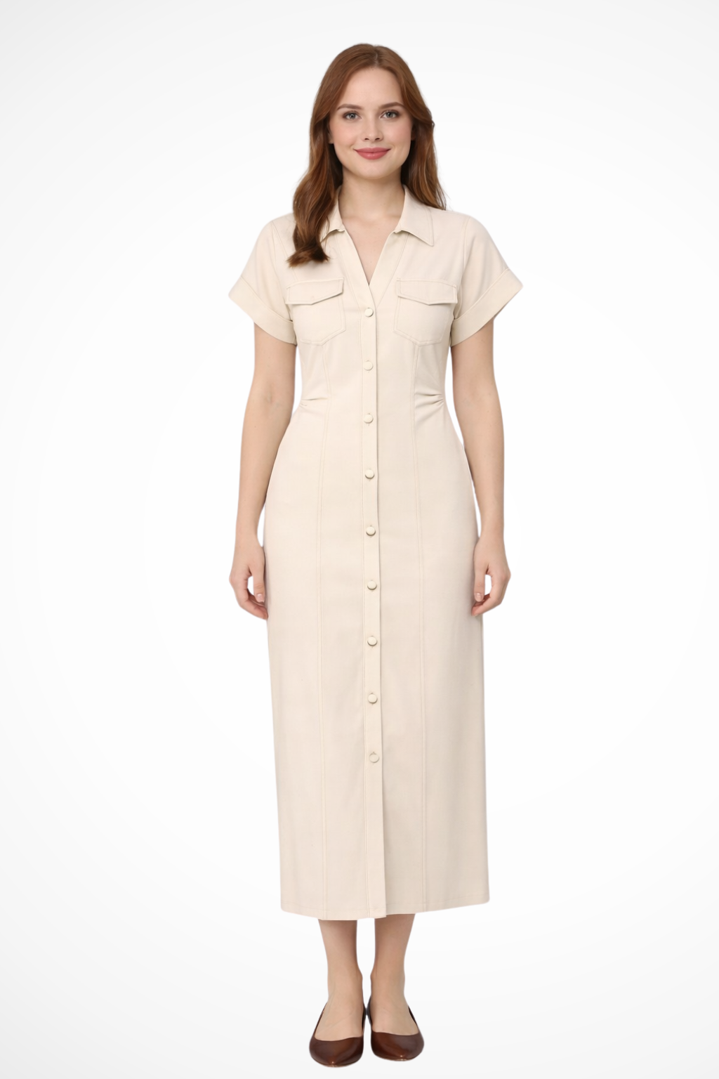 • Button Front Closure: Runs through the centre for a clean, vertical line.